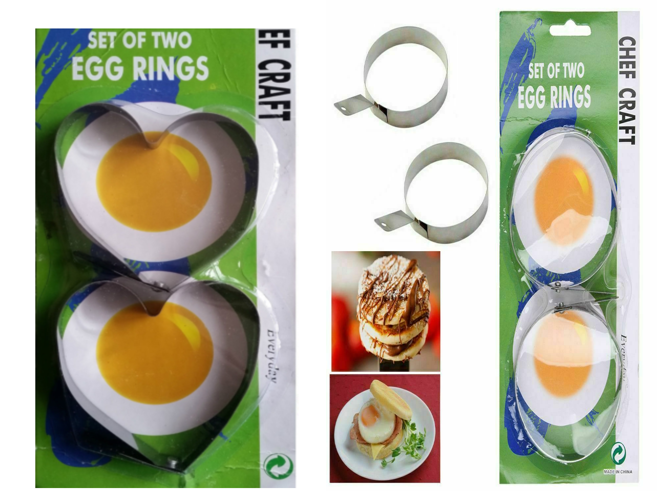 2 METAL FRIED EGG RINGS PANCAKE COOKING MOULD HEART/ROUND
