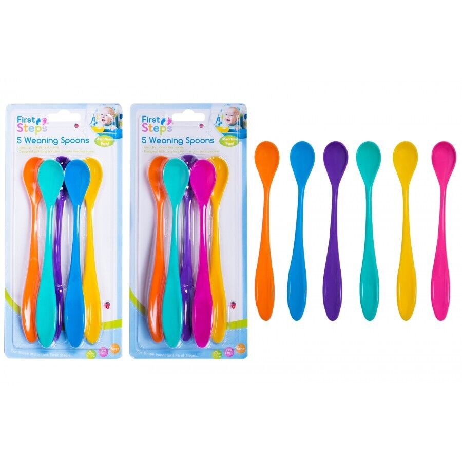 1x BPA Free Long Handle 5 Baby Weaning Feeding Spoons